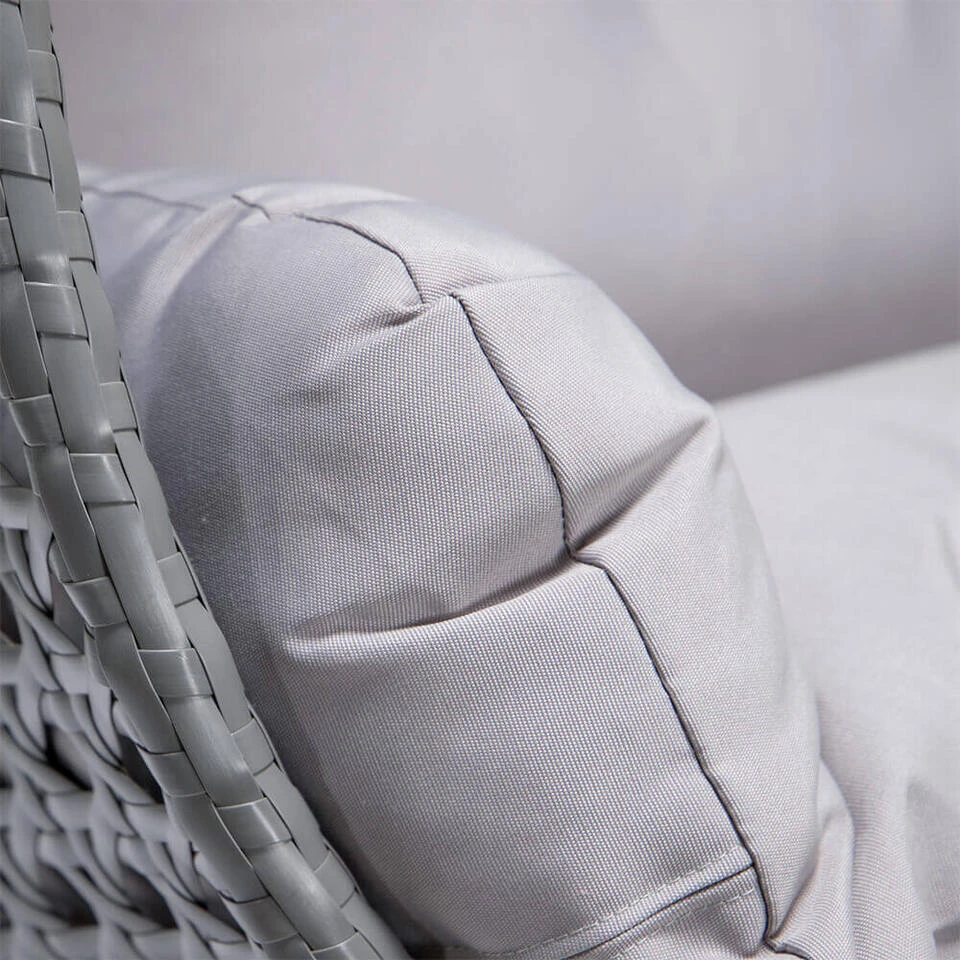 Of het nu binnen of buiten is, in de TWIN rotan hangstoel ben je in goede handen. Profiteer van de ruimte en maak het uzelf gemakkelijk, alleen of met z’n tweeën. Met de zachte trillingen brengt onze hangstoel je in een aangename staat van rust, laat je gewoon afdrijven. De vrij schommelende hangstoel is extreem duurzaam en weerbestendig. Elegant gevormd en in een grijze natuurtint past hij in elke sfeer. Het metalen frame is stabiel en extra stabiel, terwijl de twee veerbelaste ophangingen deze stoel nog comfortabeler maken. Als je eenmaal plaats hebt genomen, wil je niet meer zonder deze hangstoel.