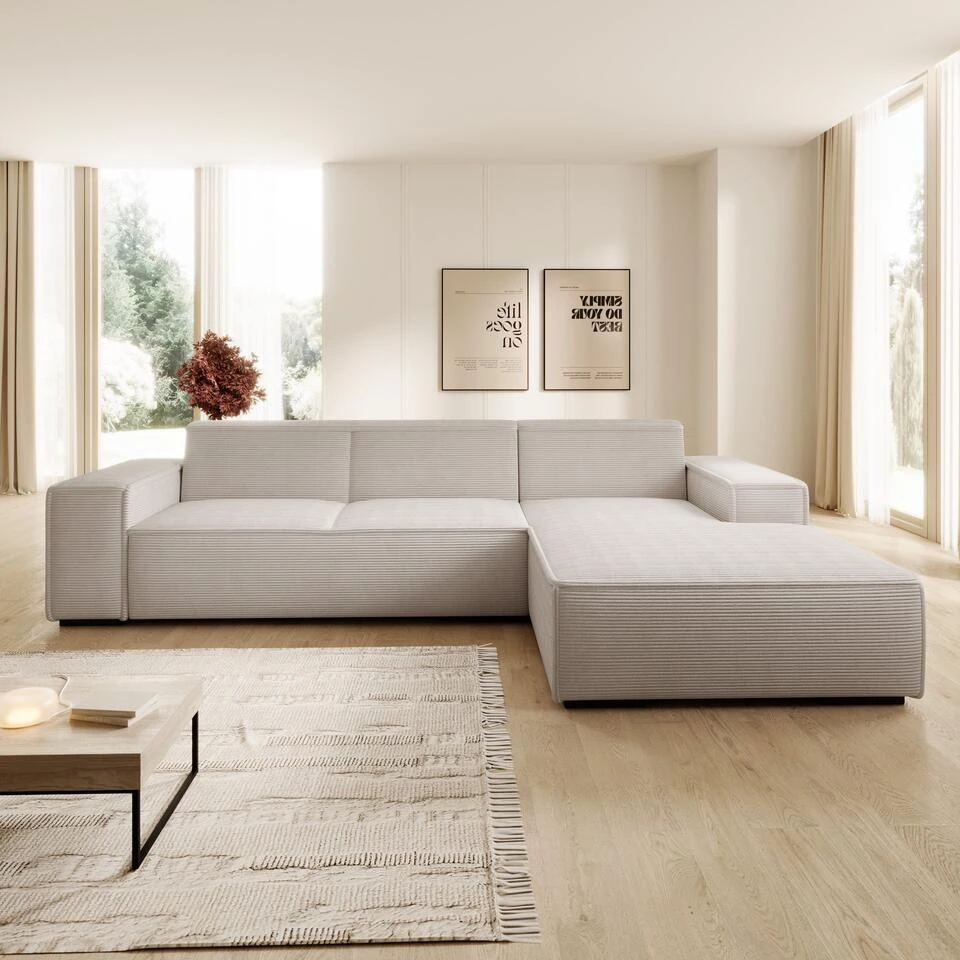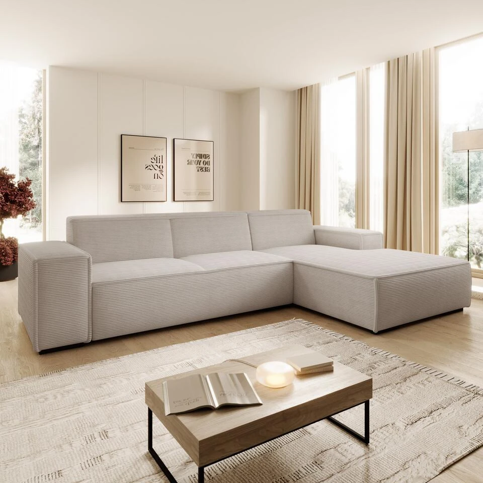 Meubella – Hoekbank Cardiff – Beige – Ribstof – Rechts