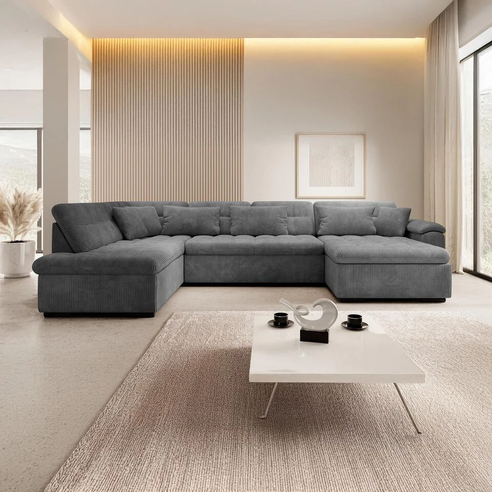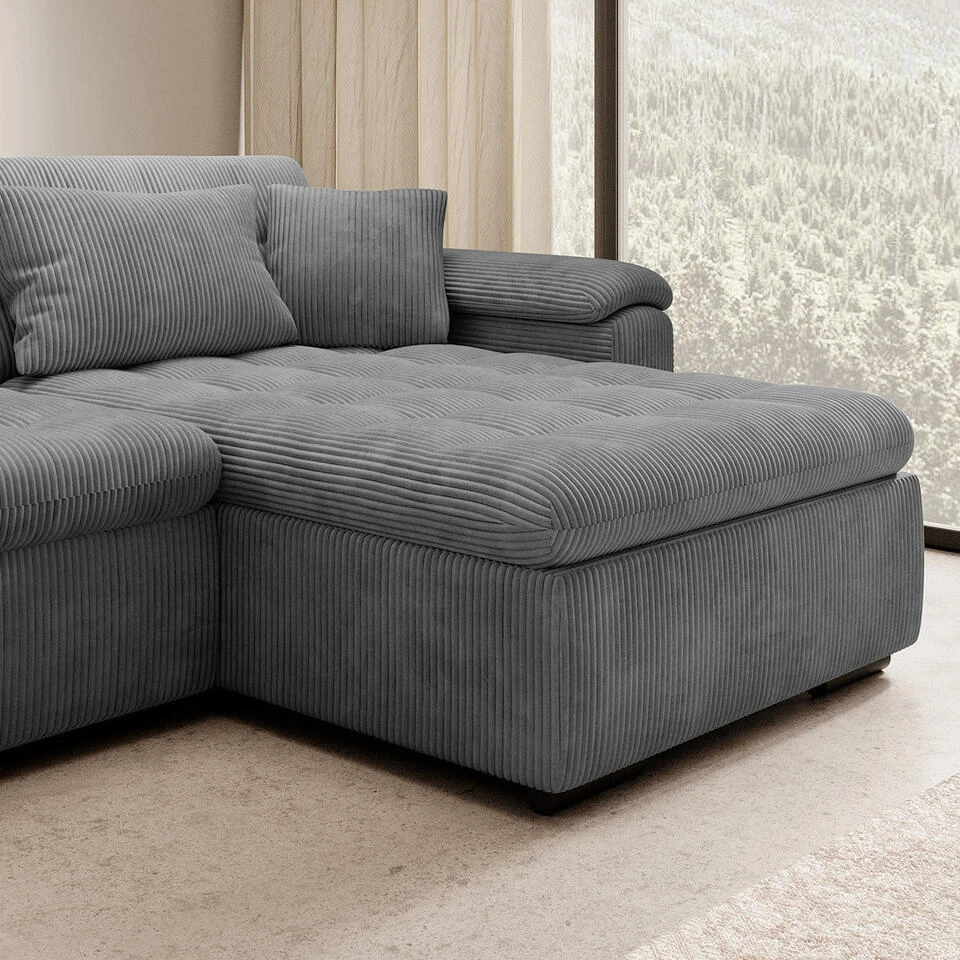 Meubella – Hoekbank Nicoreta – Donkergrijs Ribstof – Rechts