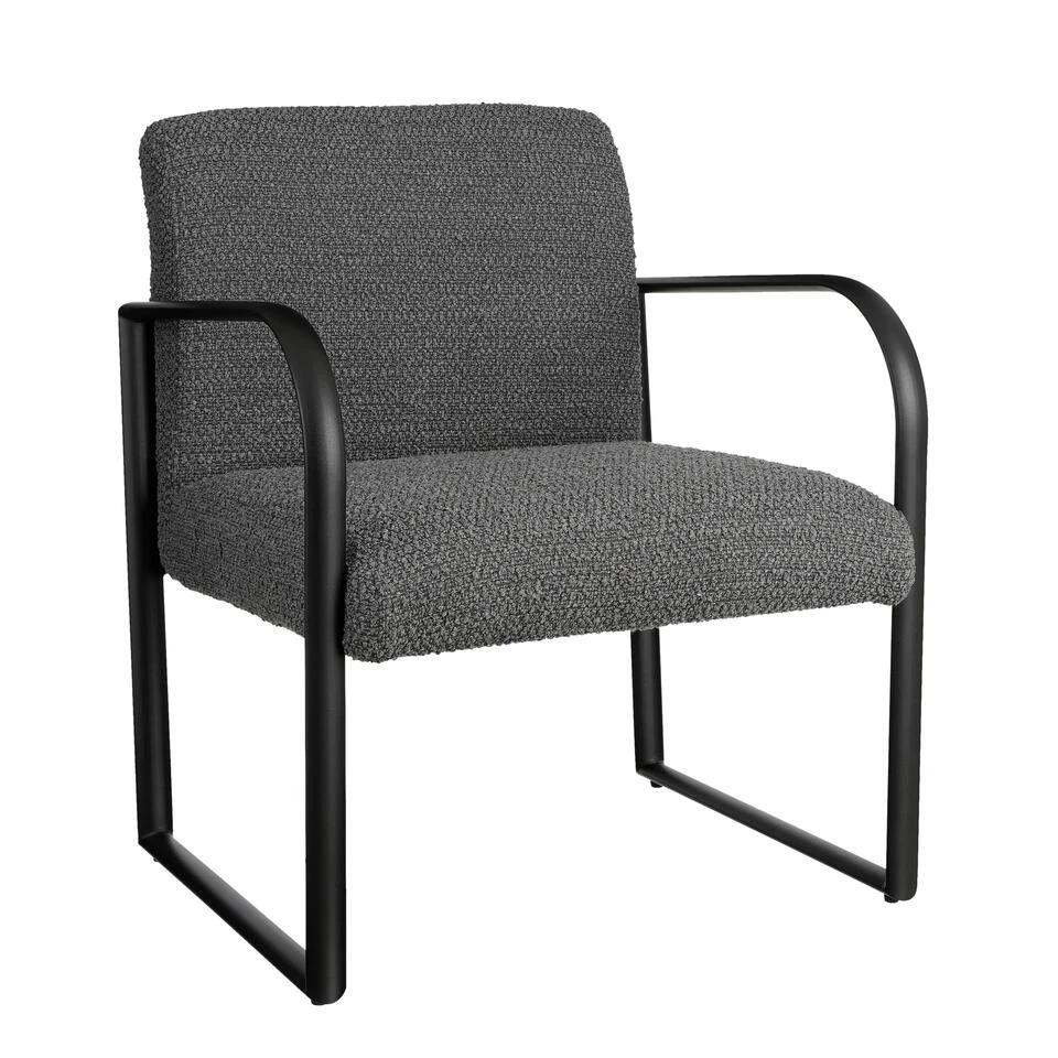 De Symon fauteuil is stijlvol en comfortabel tegelijk. De fauteuil is namelijk voorzien van een modern, zwart metalen frame en heeft een donkergrijze kleur zitting gemaakt van zachte bouclé stof. De fauteuil met armleuning zit dan ook heerlijk comfortabel en is 72 cm lang, 69 cm breed en 81 cm hoog. De zithoogte is 45 cm. Ideaal voor in een modern interieur! Waar zet jij deze comfortabele fauteuil neer?