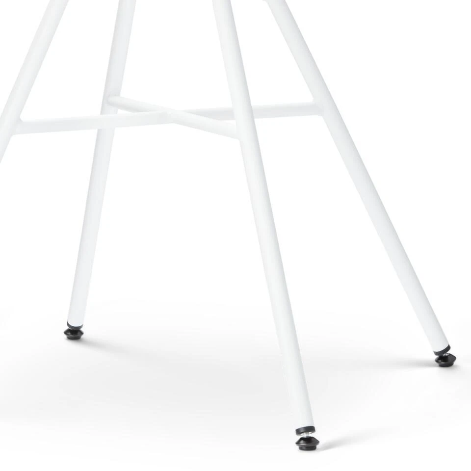 - De stoel is afgewerkt met een wit metalen onderstel met een kruis als detail
