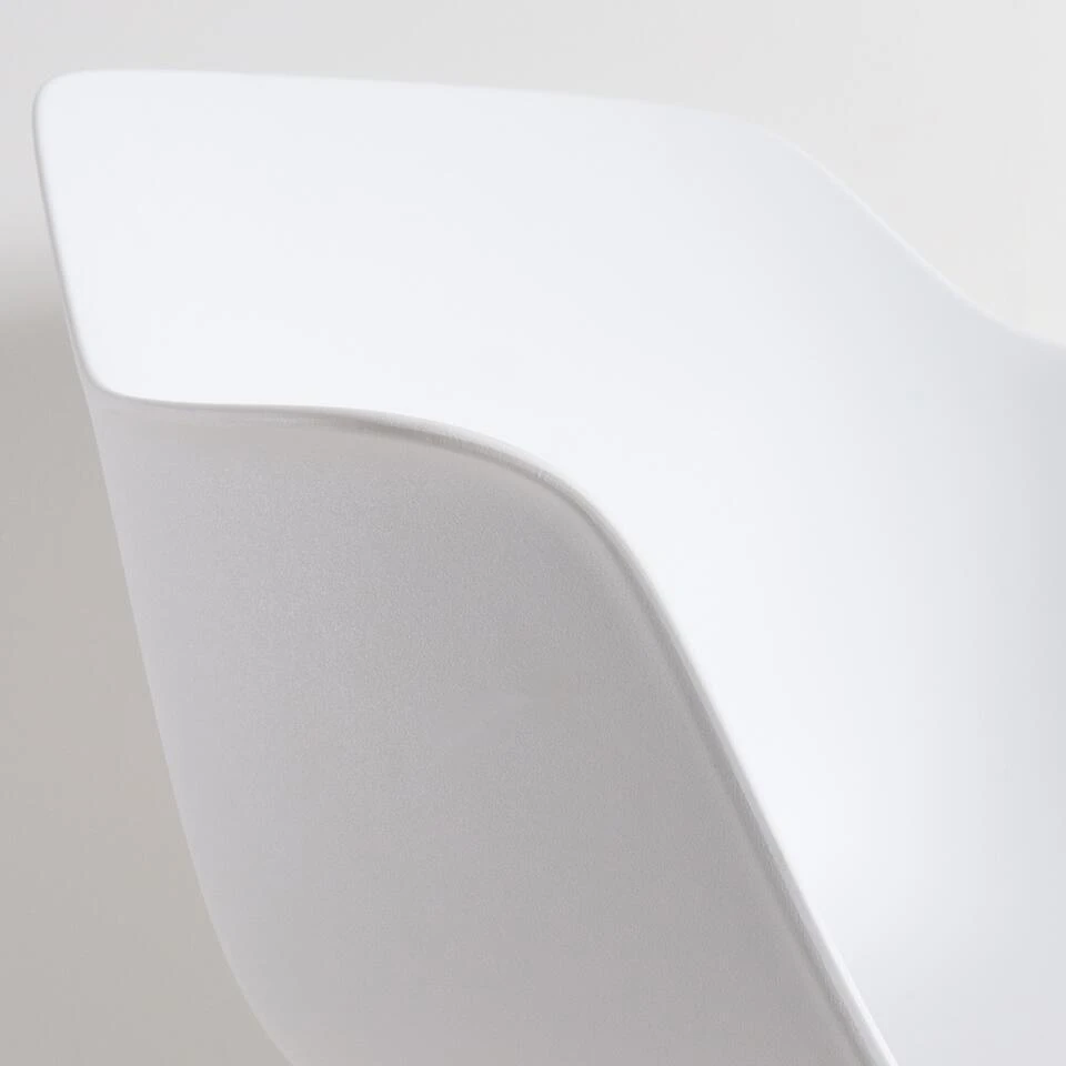 - De armleuningen van de stoel lopen op, wat extra comfort biedt tijdens het zitten. Het is echter belangrijk om te controleren of deze armleuningen onder je tafel passen, om ongemak te voorkomen.