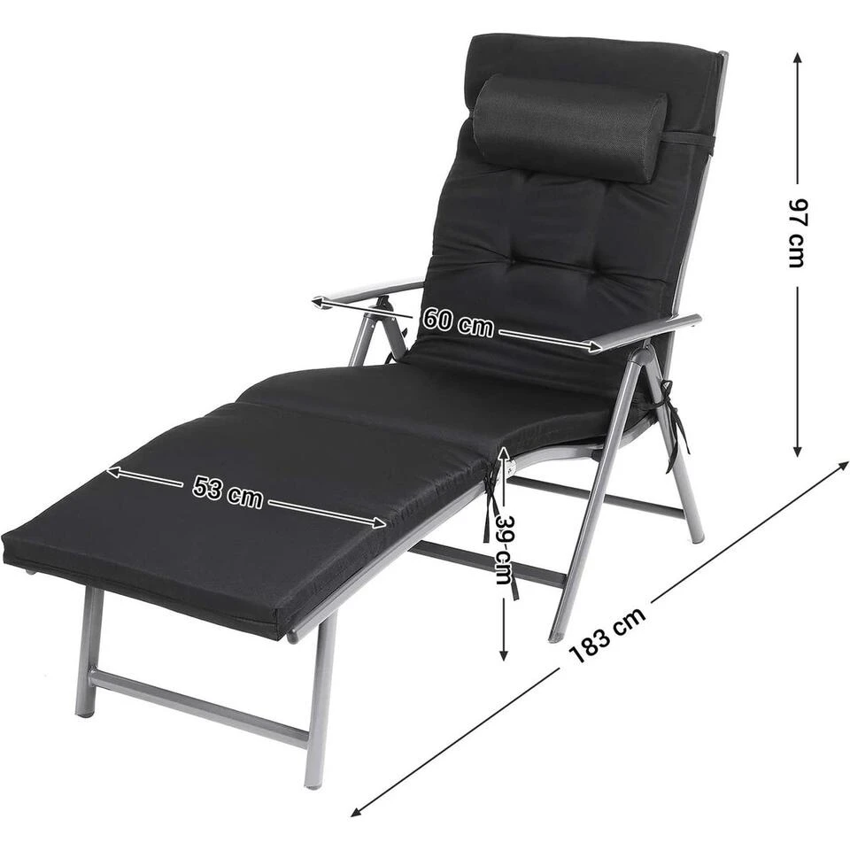 Ga in de tuin of bij het zwembad zitten tijdens een mooie dag op deze aangename ligstoel met een 6 cm dik sponsmatras en hoofdkussen. Deze tuinstoel is verstelbaar door de armleuning op te tillen, zak lekker onderuit in 7 relaxstanden (De loungestoel ligt niet volledig horizontaal). Je zult niet alleen je lichaam, maar ook je geest ontspannen.