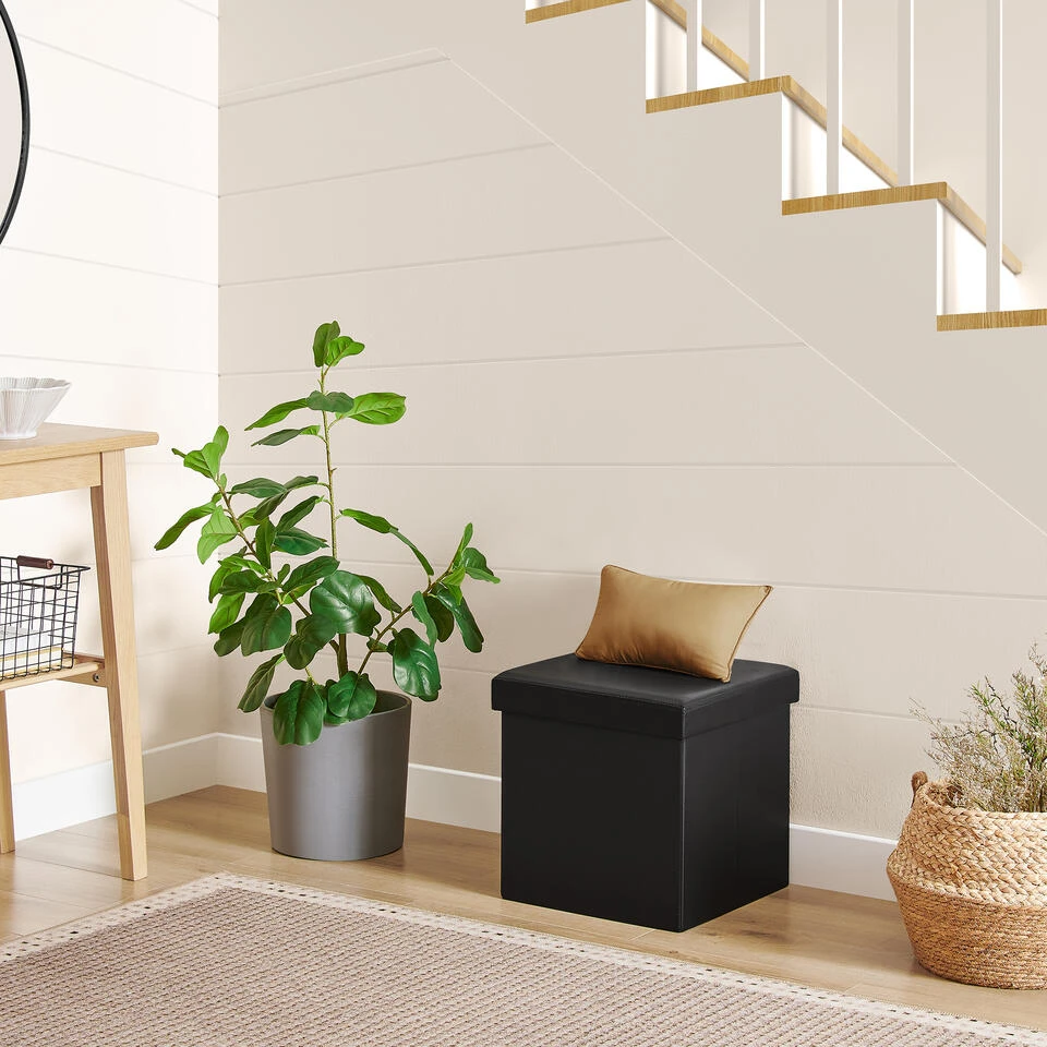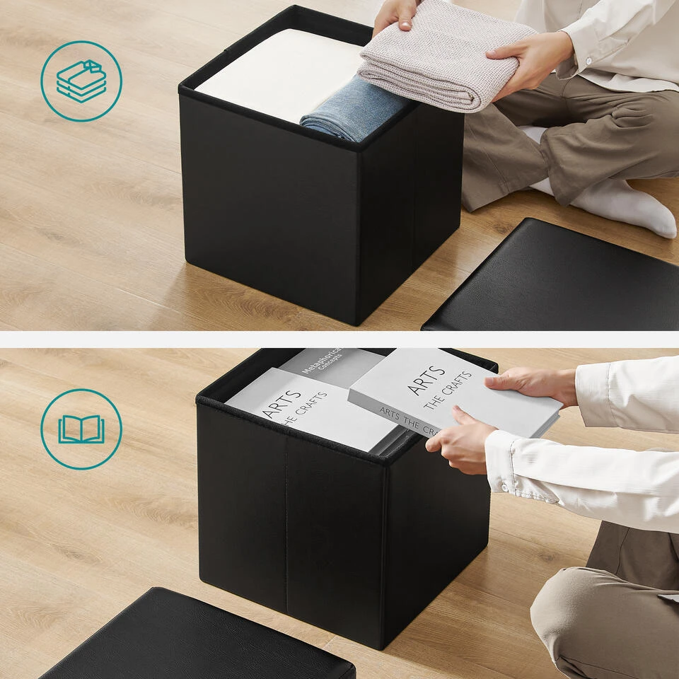 Opvouwbaar: gebruik je de poef even niet? Vouw hem dan op en berg hem weg!