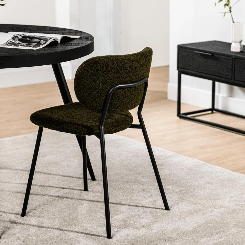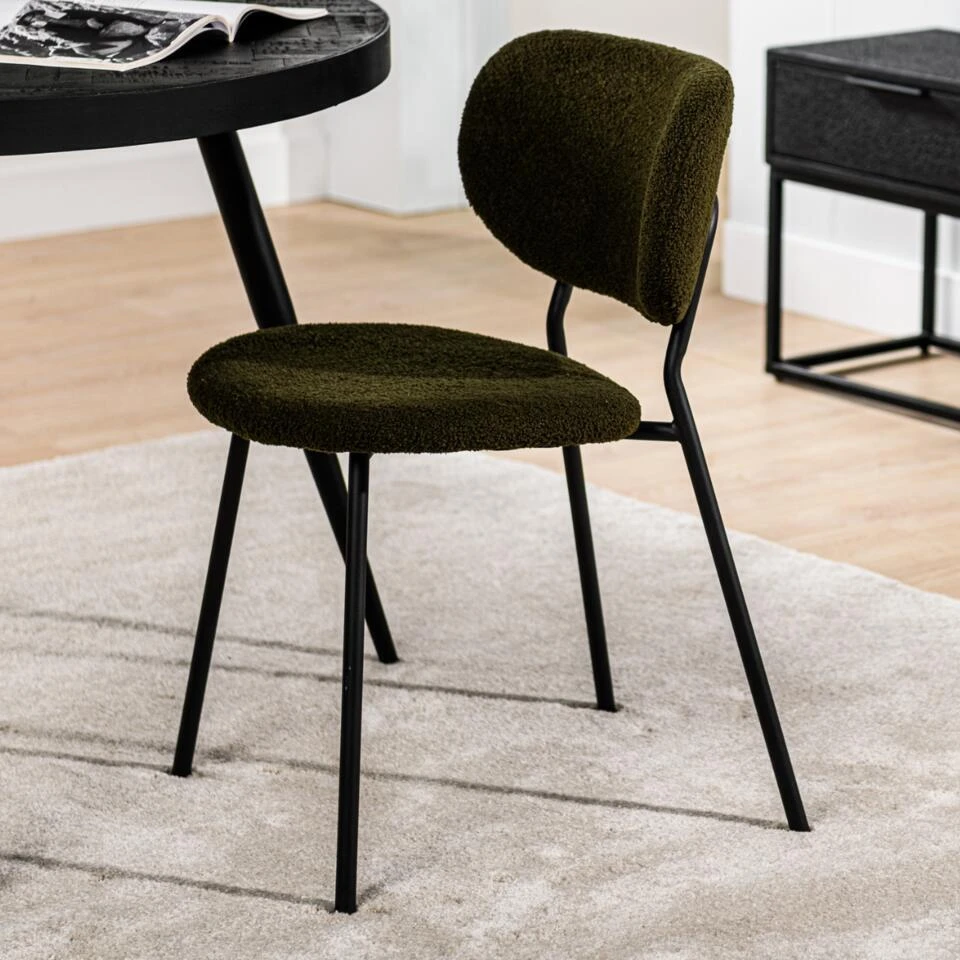 De Rutger eetkamerstoel valt op door zijn eenvoudige design en mooie materialen. De stoel is bekleed met een fijne groene teddy stof. De stoel heeft een openlijke uitstraling door een aparte rugleuning en zitting. De ronde vormen zorgen voor een prettige uitstraling. Het frame is gemaakt van zwart staal. Dit zorgt voor een stoere uitstraling. Rutger is van alle kanten leuk om naar te kijken. Ook ideaal om te gebruiken op kantoor of als bureaustoel. Rutger is te bestellen als set van twee stuks. De prijs wordt weergegeven per stuk.