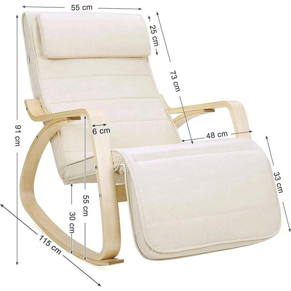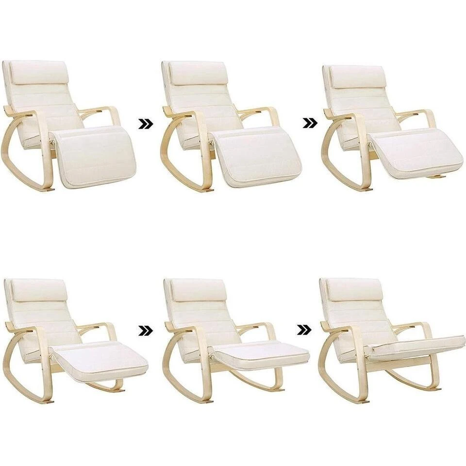 Naar boven of beneden? Je kunt de voetensteun van deze schommelstoel naar behoefte op 5 verschillende hoogtes verstellen. Of je nu een dutje op de schommelstoel wilt doen of boeken wilt lezen, je zitpositie zal altijd comfortabel zijn