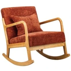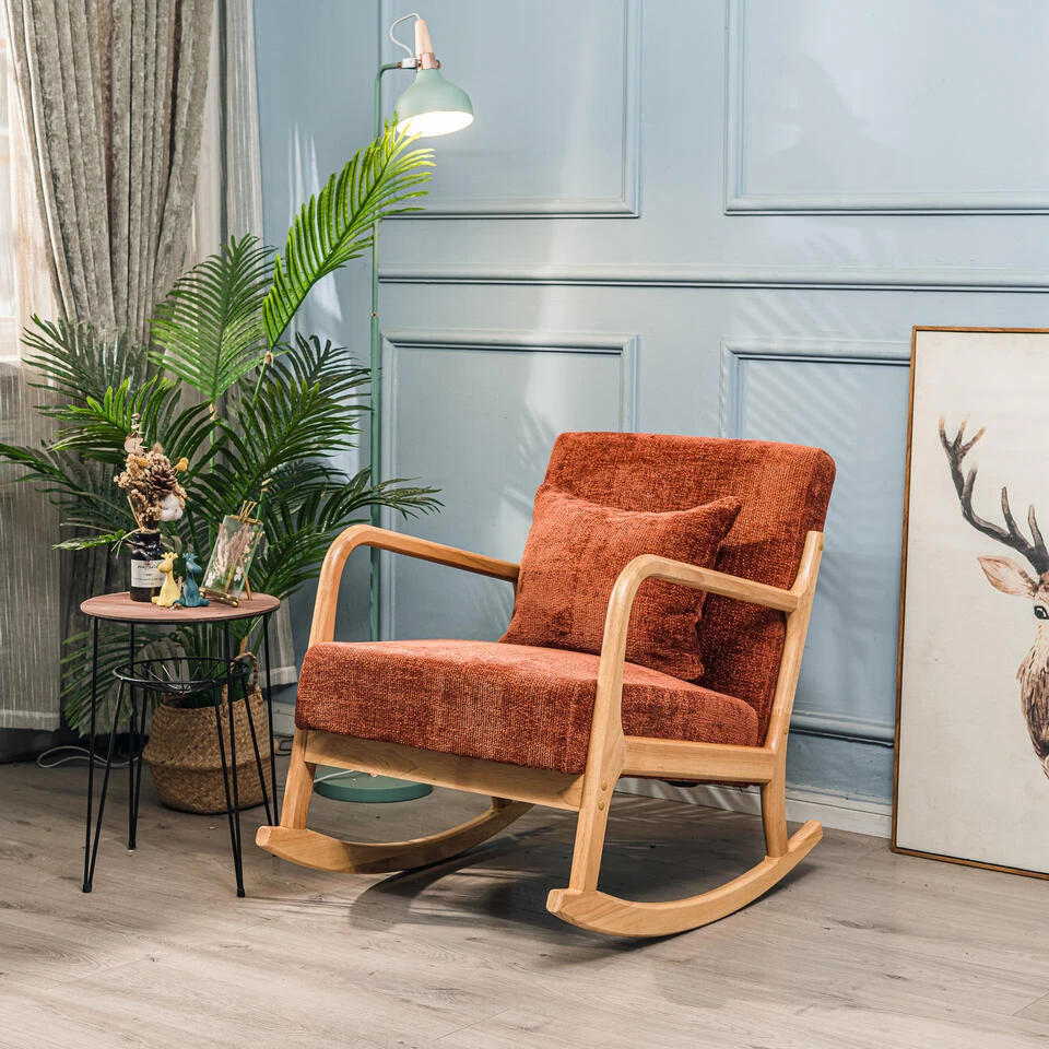 Schommelstoel Van Massief Hout En Terracotta Stof