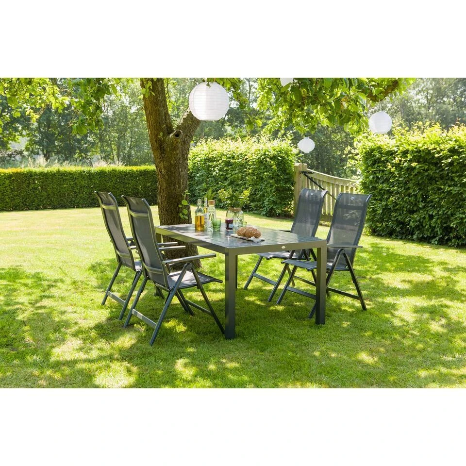 De Hartman Alice heeft een modern design en is gemaakt van onderhoudsvriendelijke materialen. Het onderstel van de standenstoel is van het stevige materiaal aluminium gemaakt. Het aluminium is voorzien van een beschermende coating in de donkergrijze kleur: Xerix. Het rug- en zitgedeelte zijn bekleed met textileen Dit materiaal voelt van zichzelf al comfortabel aan zodat de verstelbare tuinstoel ook zonder kussens lekker zit. De voorkant van de zitting is afgewerkt met een afbuigende rand zodat het textileen niet in je knieholtes kan snijden. De rugleuning van de stoel is verstelbaar in verschillende standen zodat je heerlijk kunt relaxen. De standenstoel is inklapbaar zodat je deze na het zomerseizoen compact op kunt bergen.