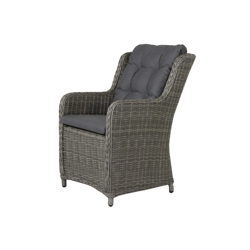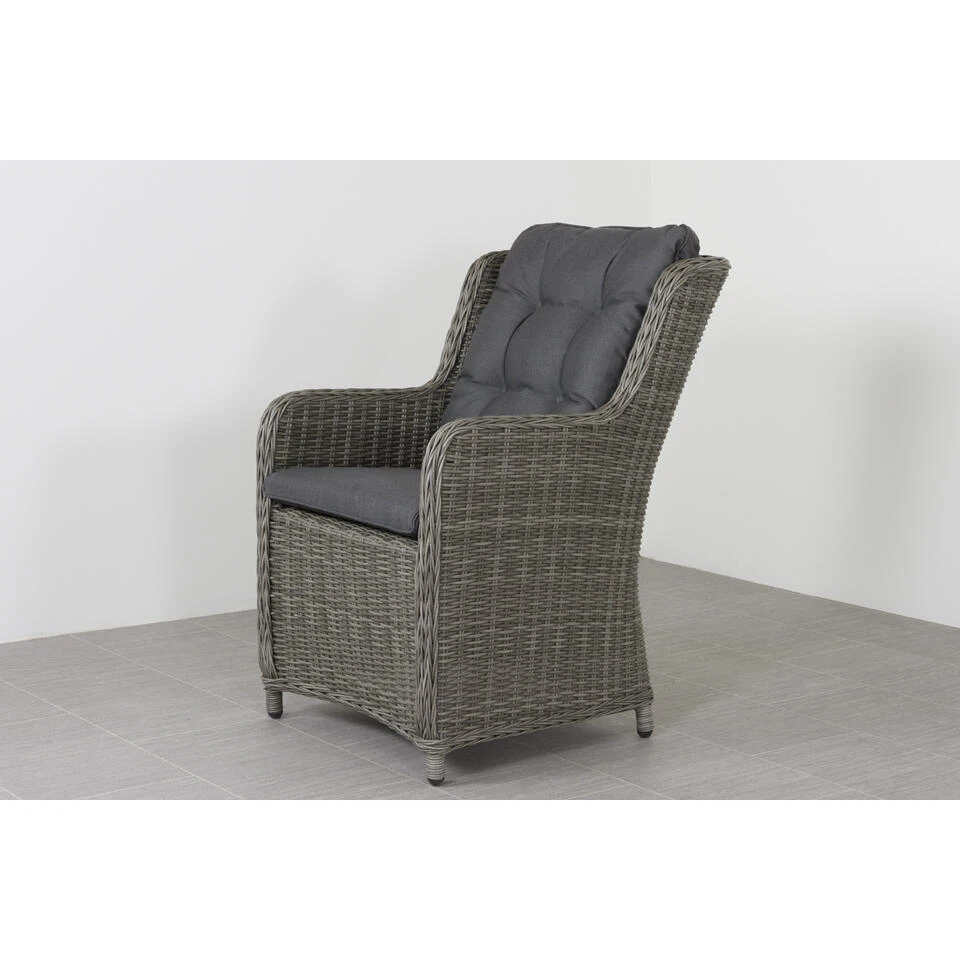 De Richmond tuinstoel heeft een grijs vlechtwerk wat ervoor zorgt dat deze bij iedere tafel gecombineert kan worden. De antraciet kussens van de dining tuinstoel maken de set tot een geheel. De stoel zit erg lekker door de ideale zithoogte en de comfortabele zit en rugkussens.