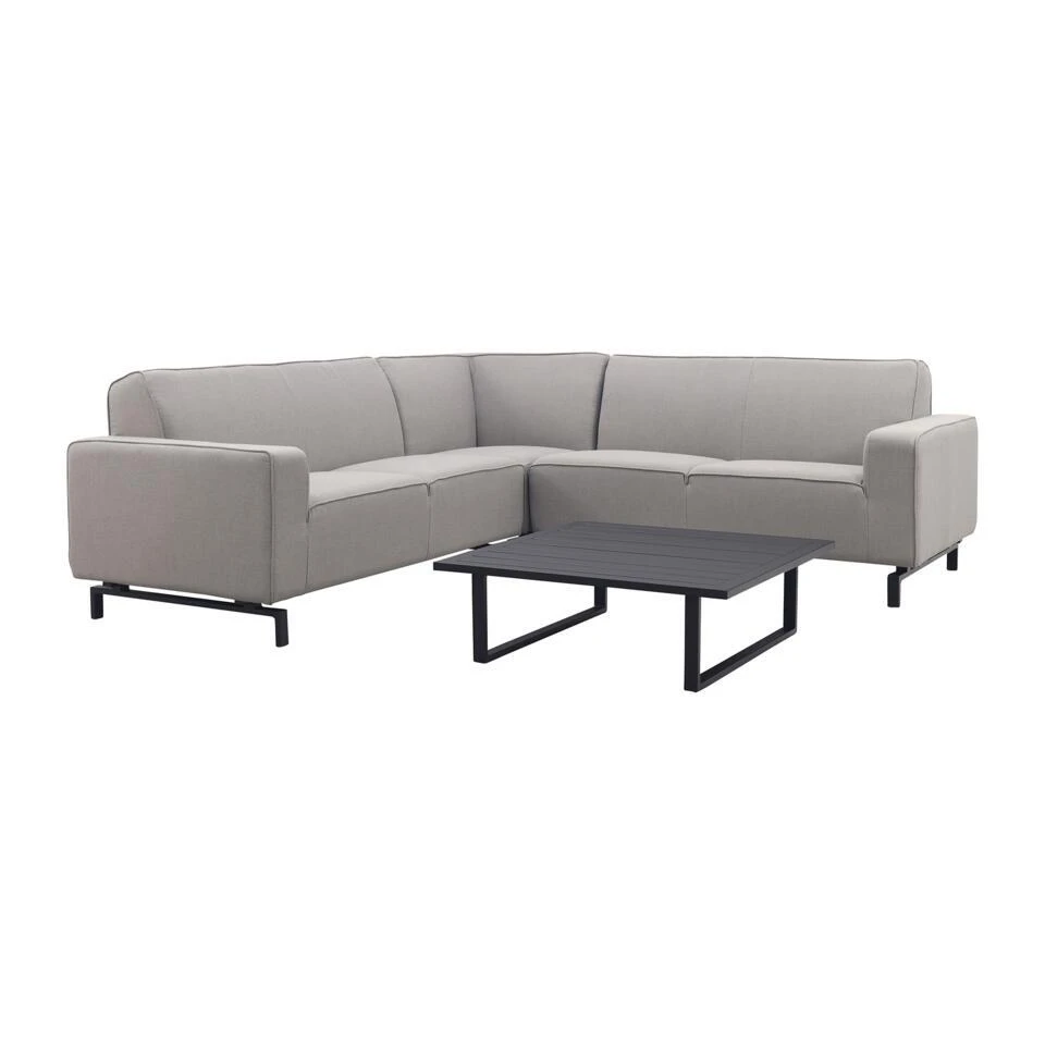 De Boavista hoekbank is opgebouwd uit modulaire elementen, waardoor je de opstelling eenvoudig kunt aanpassen aan jouw tuin of terras. Het sterke aluminium onderstel is onderhoudsvrij en roestbestendig, waardoor de bank jarenlang meegaat. De bekleding van Sunbrella all-weather stof voelt heerlijk zacht aan, maar is ook weerbestendig en vuilafstotend – geen zorgen over regen of vlekken. De dik gevulde kussens bieden ultiem comfort en ondersteunen je lichaam perfect, zodat je eindeloos kunt relaxen.