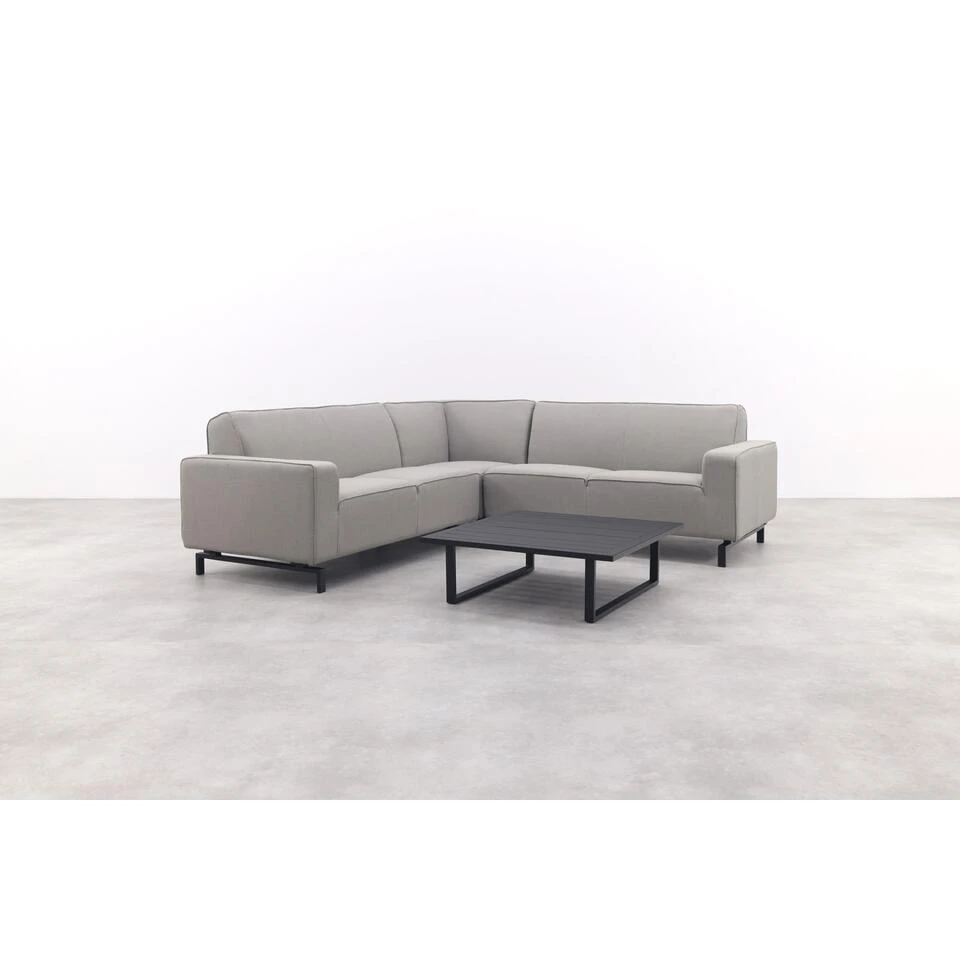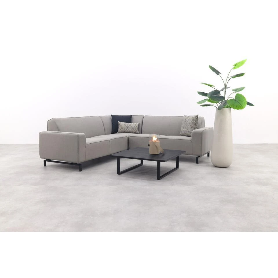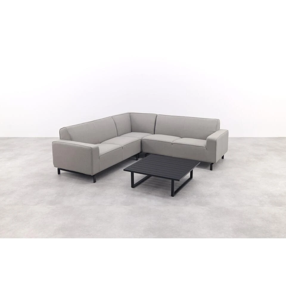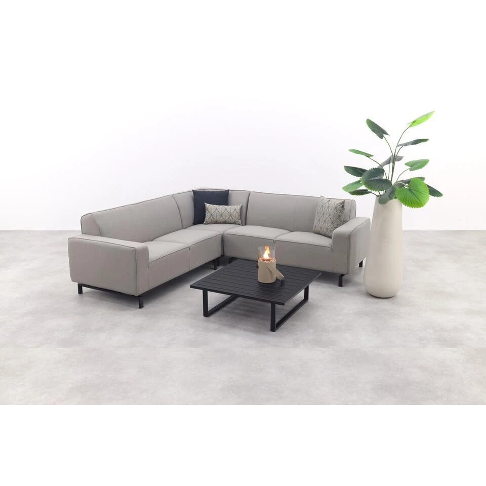 Waarom zou luxe en comfort alleen binnenshuis te vinden zijn? Met de Boavista Sunbrella hoekbank in Nature Grey en de Cuba loungetafel haal je het ultieme loungegevoel naar buiten. De royale, weerbestendige hoekbank biedt een comfortabele zitplek voor 4 tot 5 personen, terwijl de stijlvolle aluminium loungetafel perfect is voor hapjes, drankjes en decoratie. Dankzij het strakke en moderne design vormen deze meubels samen een tijdloze en sfeervolle buitenruimte. Of je nu ontspant in je eentje of lange avonden doorbrengt met vrienden en familie – deze set maakt jouw tuin of terras compleet!