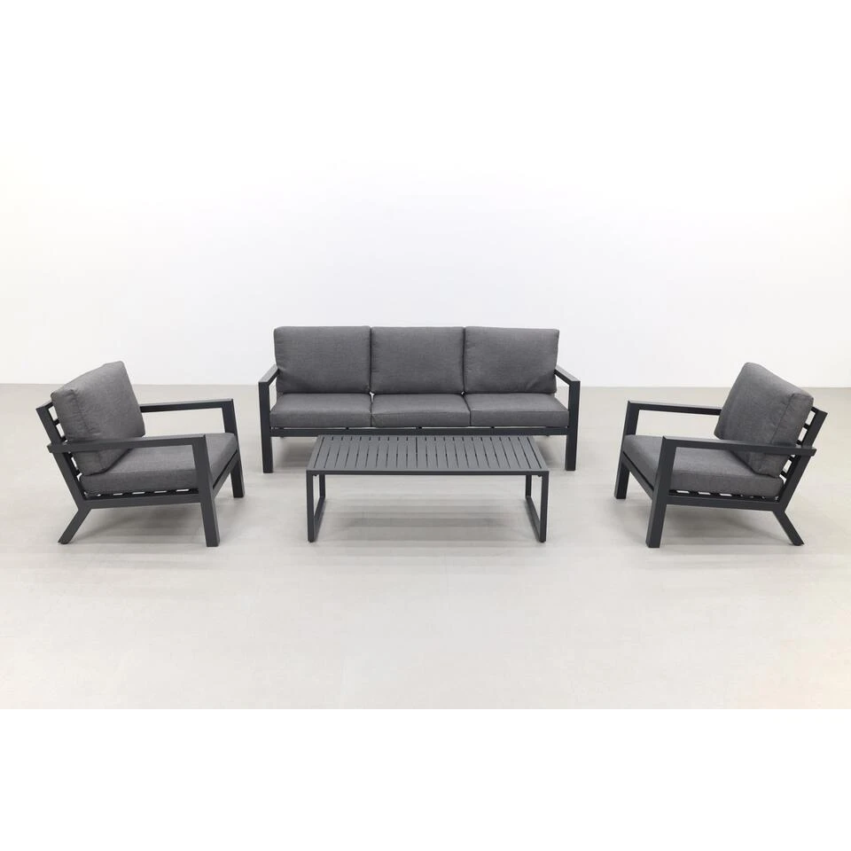 Ben jij op zoek naar een moderne loungeset die weinig onderhoud vergt? Dan is de Hugo loungeset de juiste keus voor jou! Deze loungeset is perfect om heerlijk in te ontspannen, dit komt door de comfortabele kussens die standaard worden meegeleverd. Deze loungeset bestaat uit 2 stoelen, een bank en een loungetafel. Door de combinatie van de stoelen met de bank, krijg je direct een huiselijke sfeer in je tuin. Hoe gezellig is dat? Door de antracieten kleur heeft deze loungeset echt een stijlvolle uitstraling. Deze loungeset past dan ook in veel verschillende soorten tuinen. Zie jij jezelf al tot rust komen in deze loungeset? Bestel dan direct online en hij wordt zonder bezorgkosten bij je thuis bezorgd!