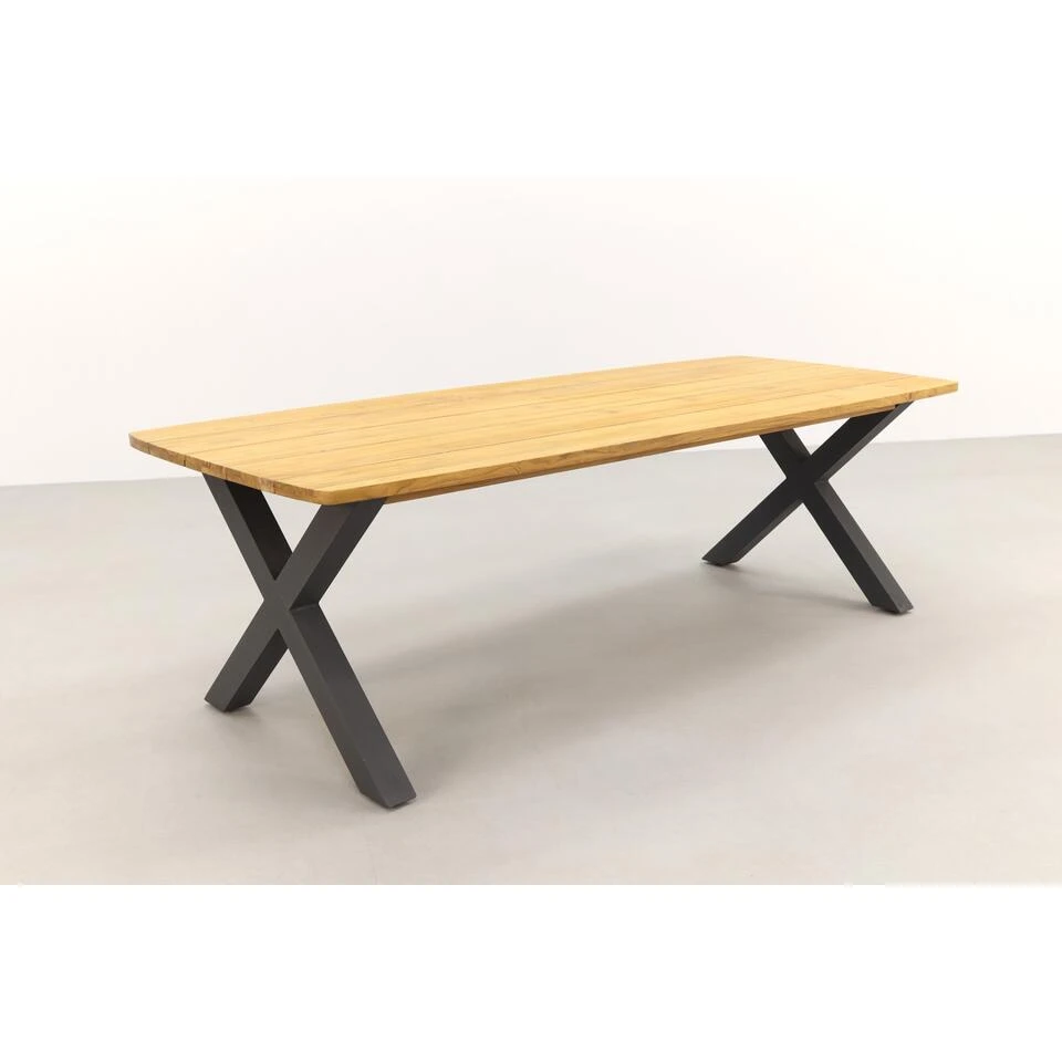 De Sefa tuintafel heeft een massief teakhouten tafelblad. Teakhout is een harde houtsoort die na verloop van tijd een grijzige gloed krijgt. Ook kunnen er barstjes en haarscheurtjes ontstaan. Hierdoor krijgt de Sefa tuintafel een nog stoerdere en natuurlijkere uitstraling. Dit natuurlijke proces doet geen afbreuk aan de kwaliteit van de tuintafel. Mocht je de originele kleur van het teakhout willen behouden dan adviseren wij om het tafelblad te behandelen met een teakprotector. Het stevige frame waarop het teakhouten tafelblad is bevestigd is gemaakt van aluminium. Aluminium heeft als voordeel dat het erg licht van gewicht is en weinig onderhoud nodig heeft. Daarnaast is het ook nog eens afgewerkt met een antraciet kleurige coating voor extra bescherming.