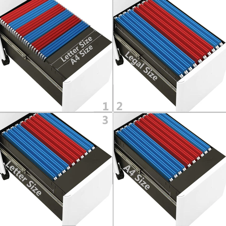 Deze ladekast is gemaakt van staal, waardoor hij zowel duurzaam als gemakkelijk schoon te maken is. Dankzij de 3 lades en het slot kan je dossiers netjes sorteren en veilig opbergen in deze archiefkast. Elke lade is tevens voorzien van 1 verwijderbare ophangstang, die geschikt is voor het opbergen van A4-hangmappen. Het verrijdbare kastje bevat ook een pennenbak, zodat je je bureaublad opgeruimd kunt houden. De 3-sectie kogelladegeleiders zorgen voor het soepel openen en sluiten van de lades. Zelfs bij een zwaardere belasting kunnen deze lades volledig worden uitgetrokken. De linker- en rechterhoeken van de kast zijn rond.
