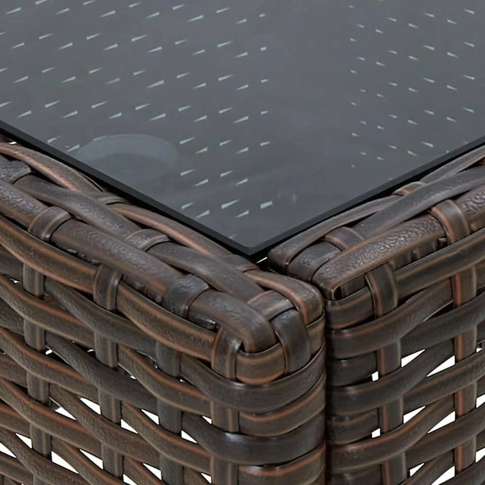 De robuuste tafel is gemaakt van onderhoudsvrij PE-rattan, waardoor hij gemakkelijk schoon te maken is met een vochtige doek en perfect is voor buitengebruik. Dankzij het stalen frame is deze tafel zeer stabiel en veilig. Het glazen tafelblad geeft je buitenruimte een luxe tintje. De tafel kan eenvoudig verplaatst worden.