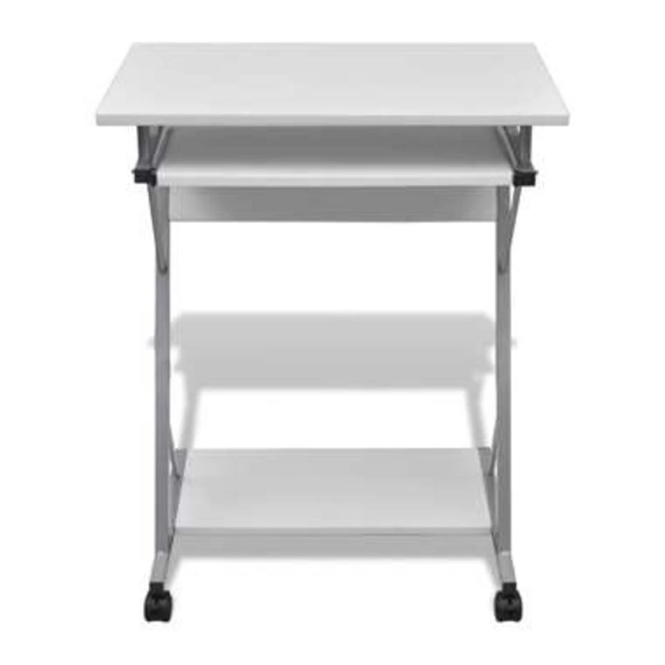 Het groot werkblad is 60 x 40 cm. Dit computer bureau is ontworpen met een uitschuifbaar toetsenbord gedeelte en een onderste plank voor uw computer of printer.Gemaakt van spaanplaat en gepoedercoat stalen frames, deze computermeubel zal gegarandeerd jarenlang meegaan.
